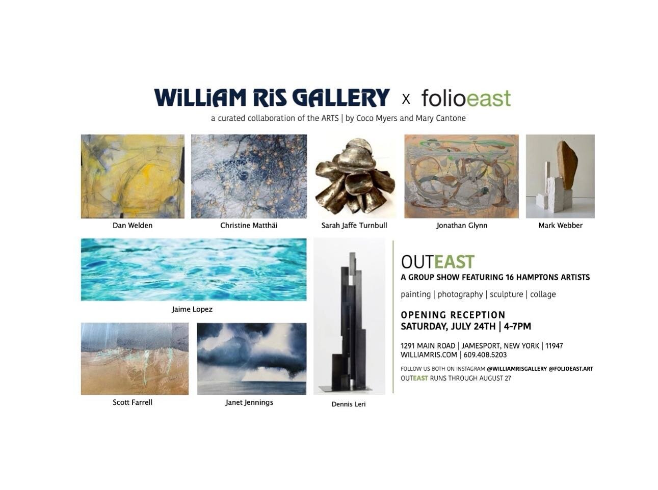 Designed with the mission of highlighting the community of East End artists, folioeast has since showcased the work of more than one hundred artists in venues as varied as Springs' iconic Ashawagh Hall, Robert Wilson's Watermill Center, The Clinton Academy and many other pop up spaces as well as in collaboration with East End galleries.